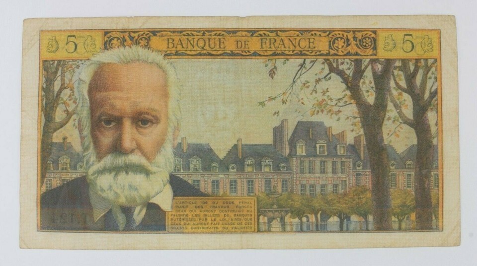 1964 France 5 Nouveaux Francs Note // Victor Hugo // Very Fine (VF) P#141a