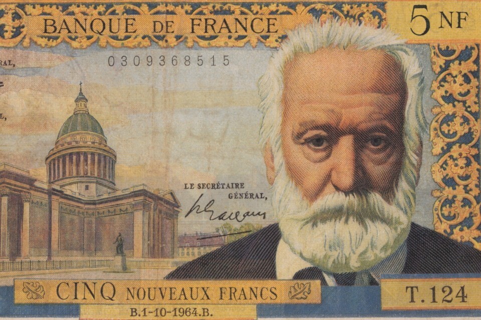 - 1964 France 5 Nouveaux Francs Note // Victor Hugo // Very Fine (VF) P#141a