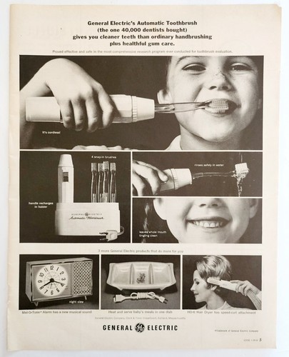 - 1964 General Electric Automatic Toothbrush Advertisement Dental Hygiene HM2F