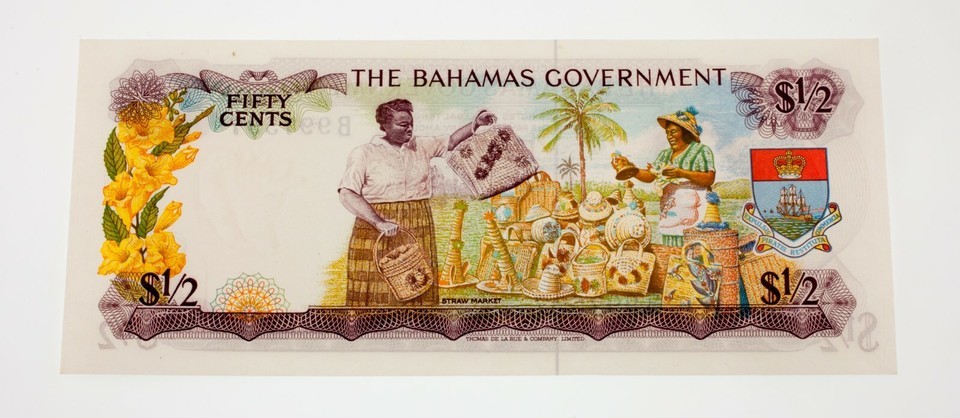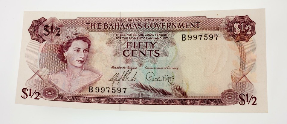 - 1965 Bahamas 1/2 Dollar Note Uncirculated Condition Pick #17