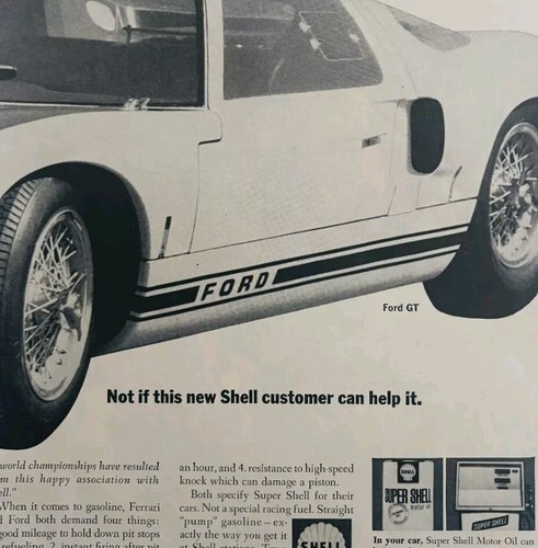 - 1965 Ford GT Sebring Race Shell Motor Oil Advertisement Automobilia DWLL7