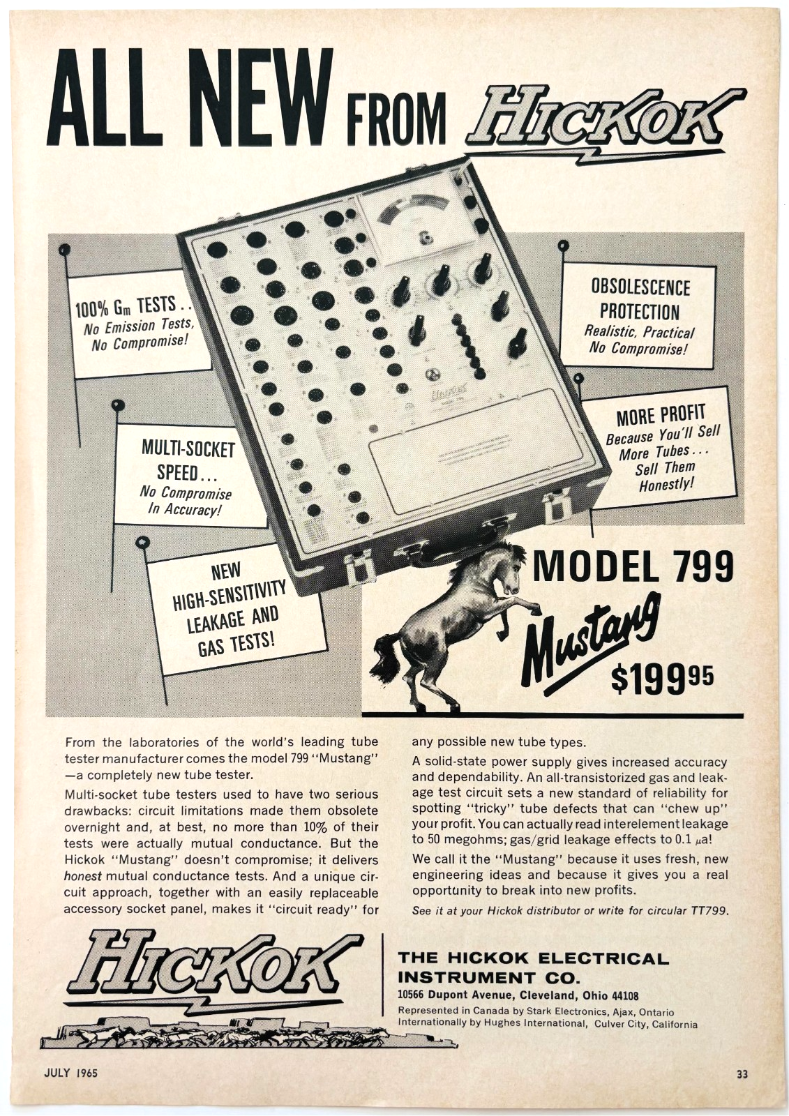 - 1965 Hickok Mustang 799 Tube Tester Advertisement Vintage Electronics DWU16C