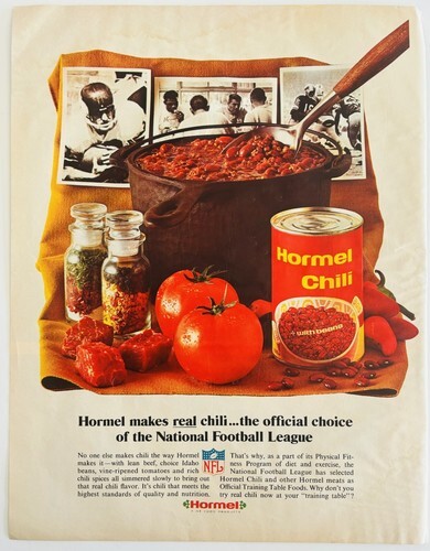 1965 Hormel Chili With Beans NFL Football Advertisement Look Magazine Food HM2Z
