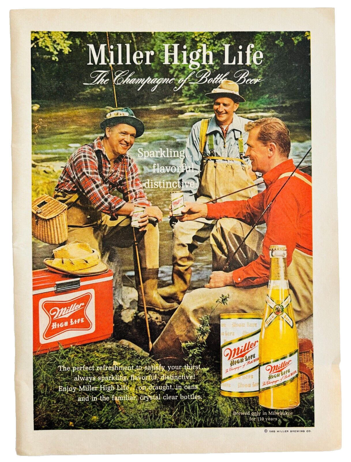 - 1965 Miller High Life Beer Advertisement Vintage Brewery Fishing Scene DWF15