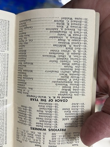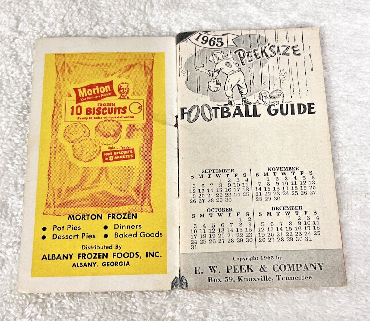 1965 Peek Size 26th Annual Football Guide Featuring SE Conference Bowl Results + it has edge wear but it's in good shape the bottom of the spine might have an ink spot or it's how it was printed small pocket sized at 4 1/2 x 2 1/2 inches