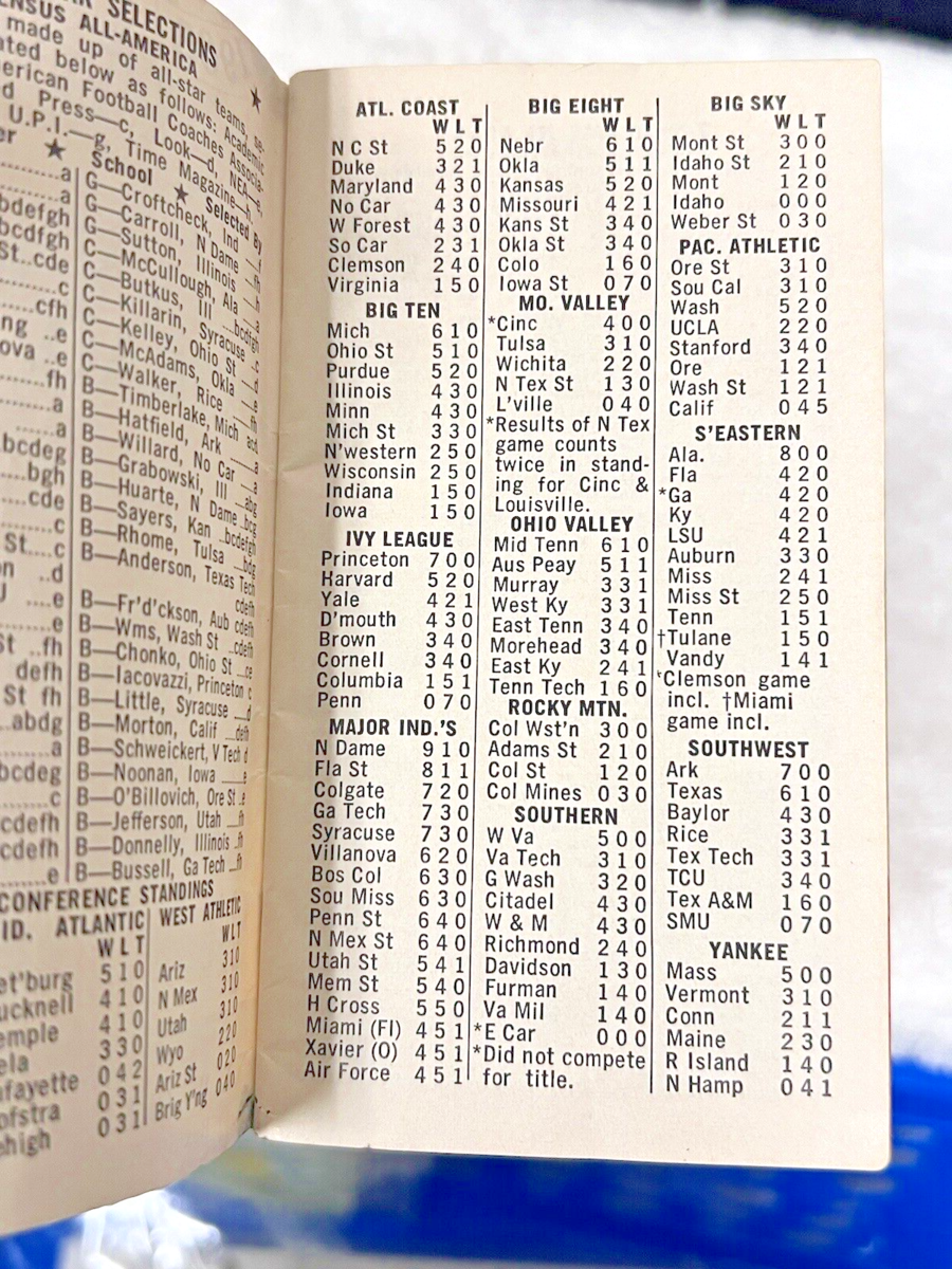 - 1965 Peek Size 26th Annual Football Guide Featuring SE Conference Bowl Results +