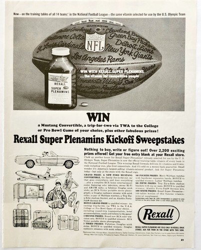 1965 Rexall Plenamins Vitamins NFL Playoffs Advertisement Football HM2G