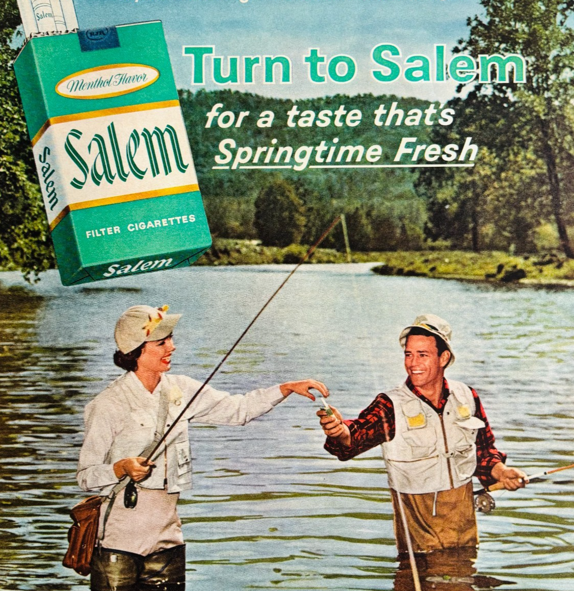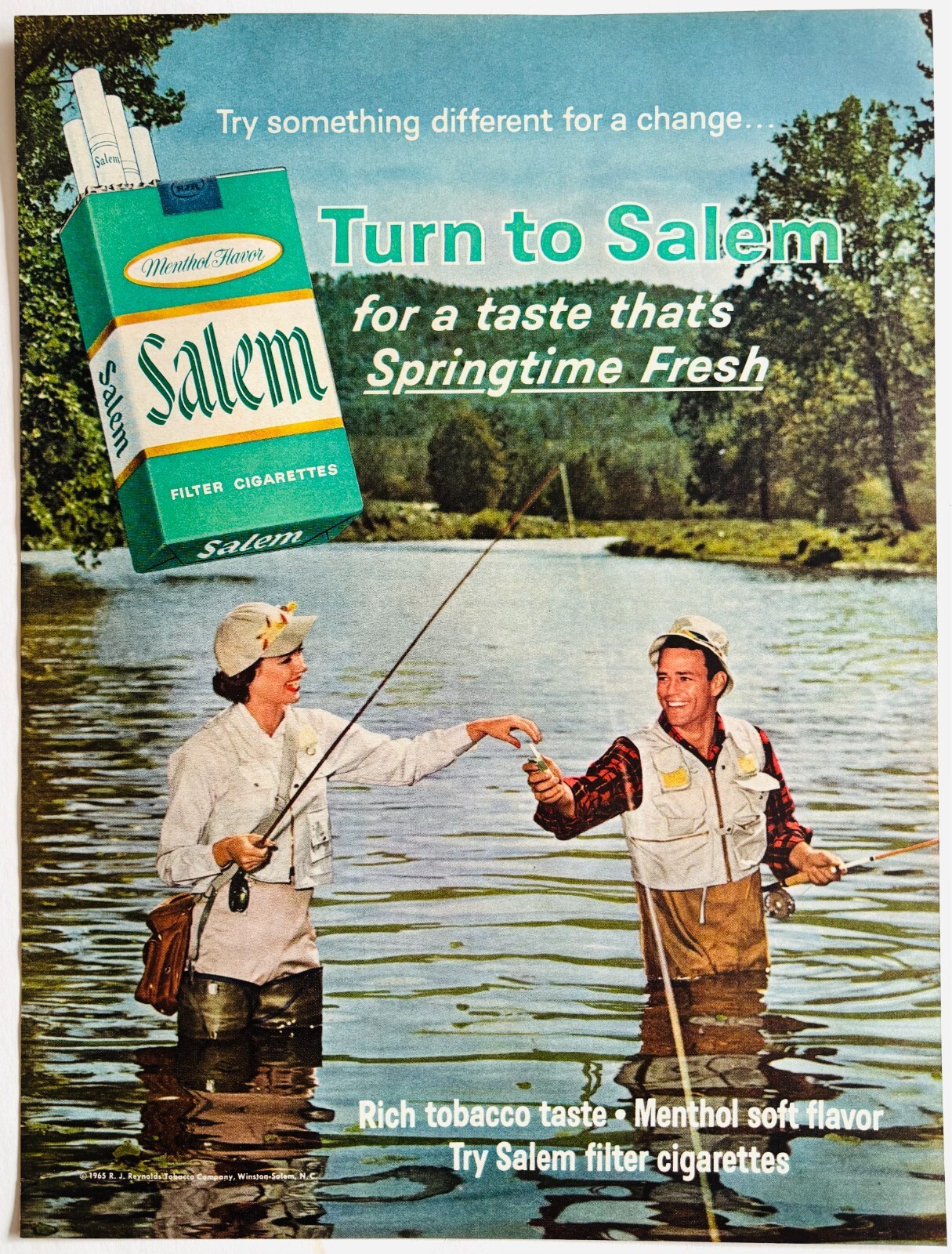 - 1965 Salem Menthol Cigarettes Advertisement Vintage Tobacco Fishing DWYY3