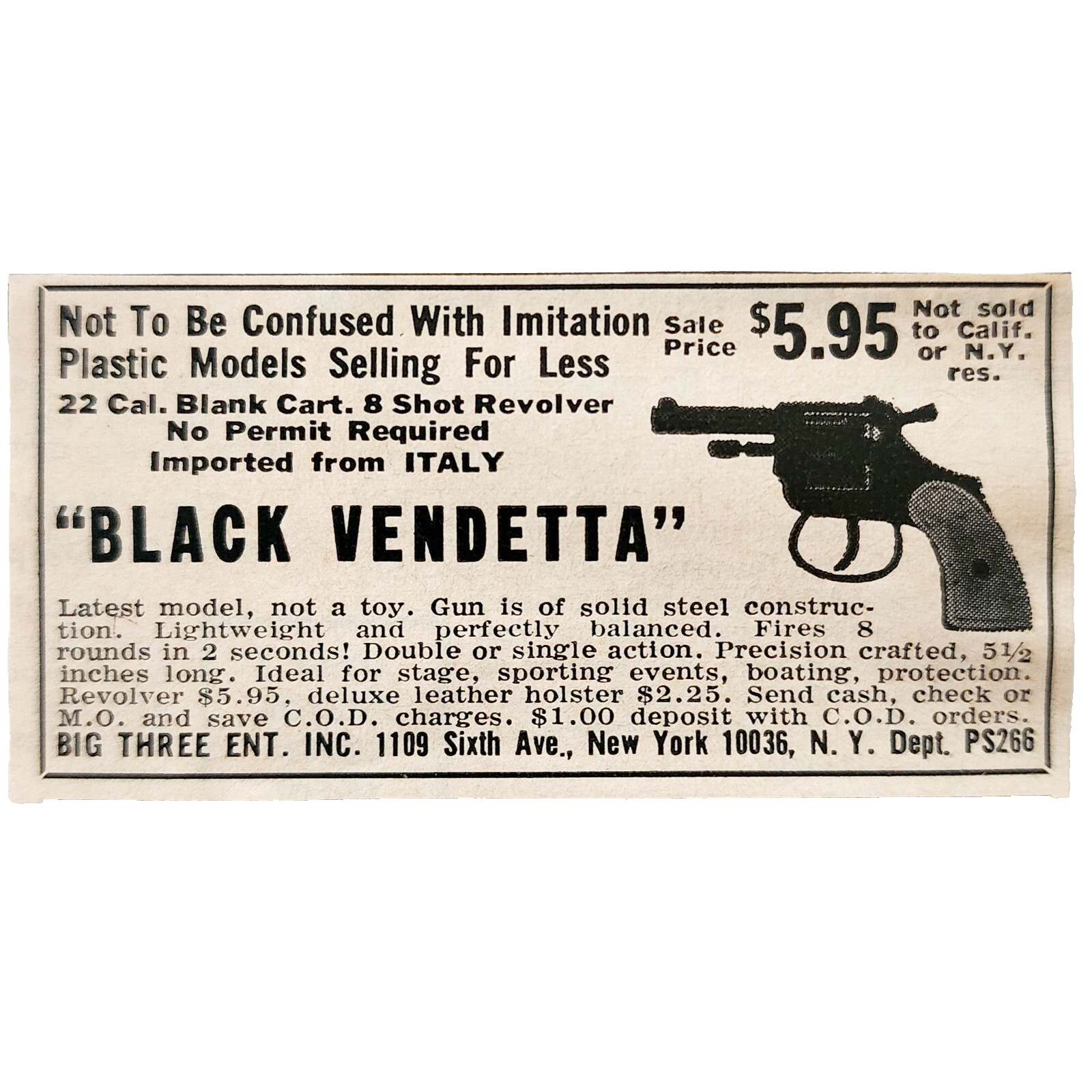 - 1966 Black Vendetta Revolver Advertisement Vintage Firearms 22 Caliber Gun DWF28