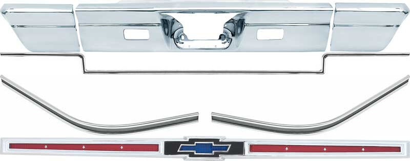 1966 Chevy Full Size 3 Piece Bumper, Trunk Molding, Quarter Molding and Trunk Emblem - Set