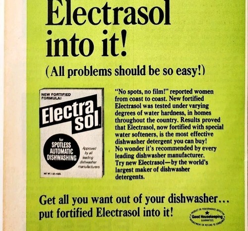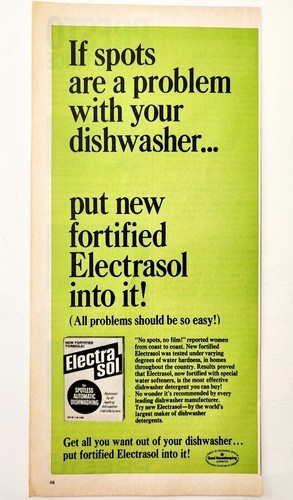 - 1966 Electrasol Dishwasher Fortified Soap Cleaner Advertisement Detergent E91D