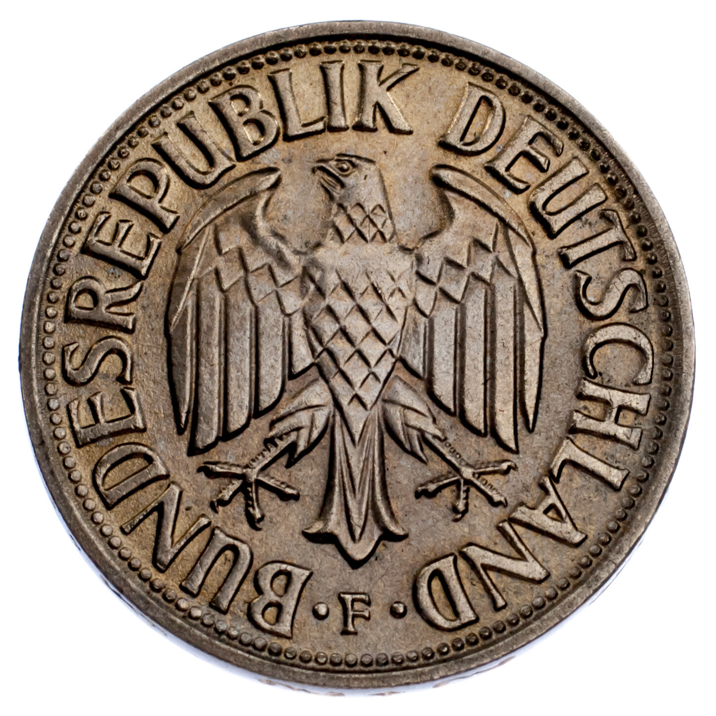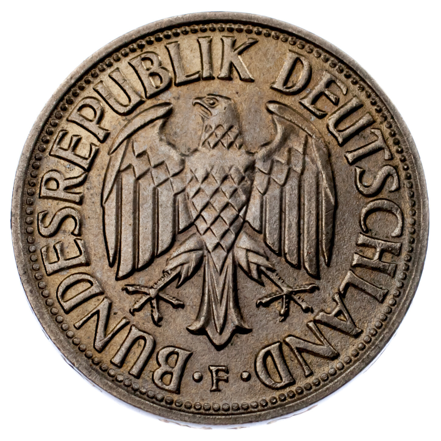 - 1966-F German 1 Mark Coin (BU Condition) Stuttgart Mint KM 110