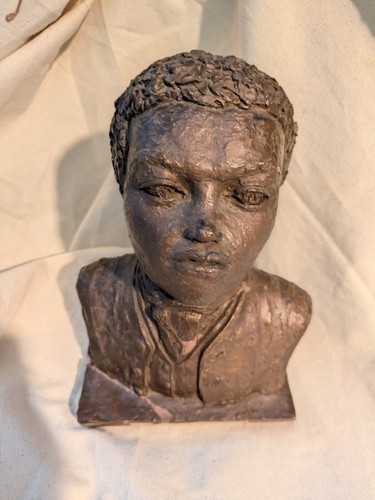 Le produit est une sculpture de 1968 d'Inge Hardison, illustrant un buste portrait de Benjamin Banneker, une figure historique afro-americaine. Le buste est en tres mauvais etat, voir les photos.