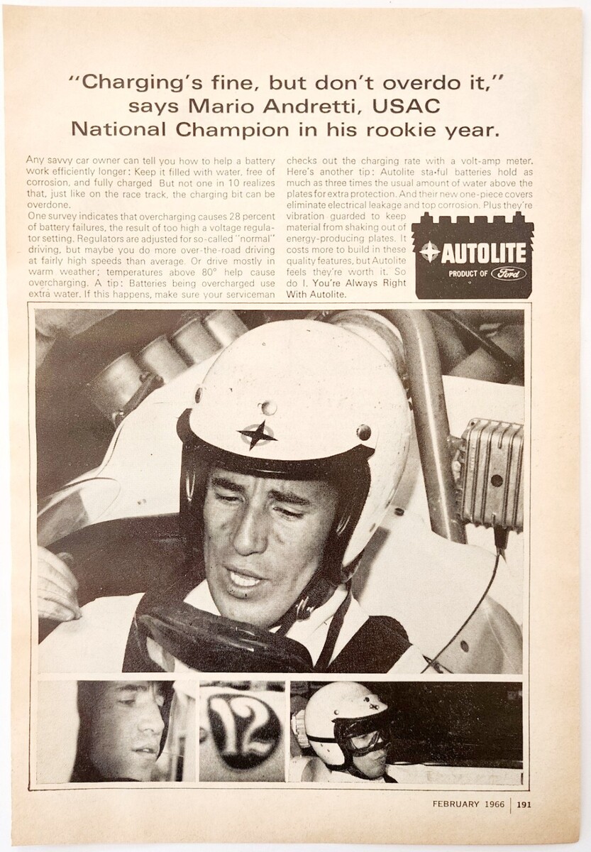 1966 Mario Andretti USAC Champ Advertisement Ford Autolite Battery DWF27