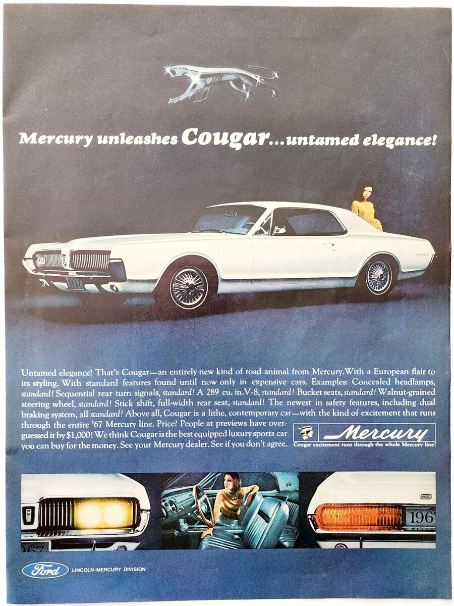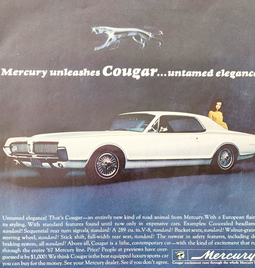 - 1966 Mercury 67 Cougar Car Advertisement Automobilia Ford Motor Vintage DWJJ11