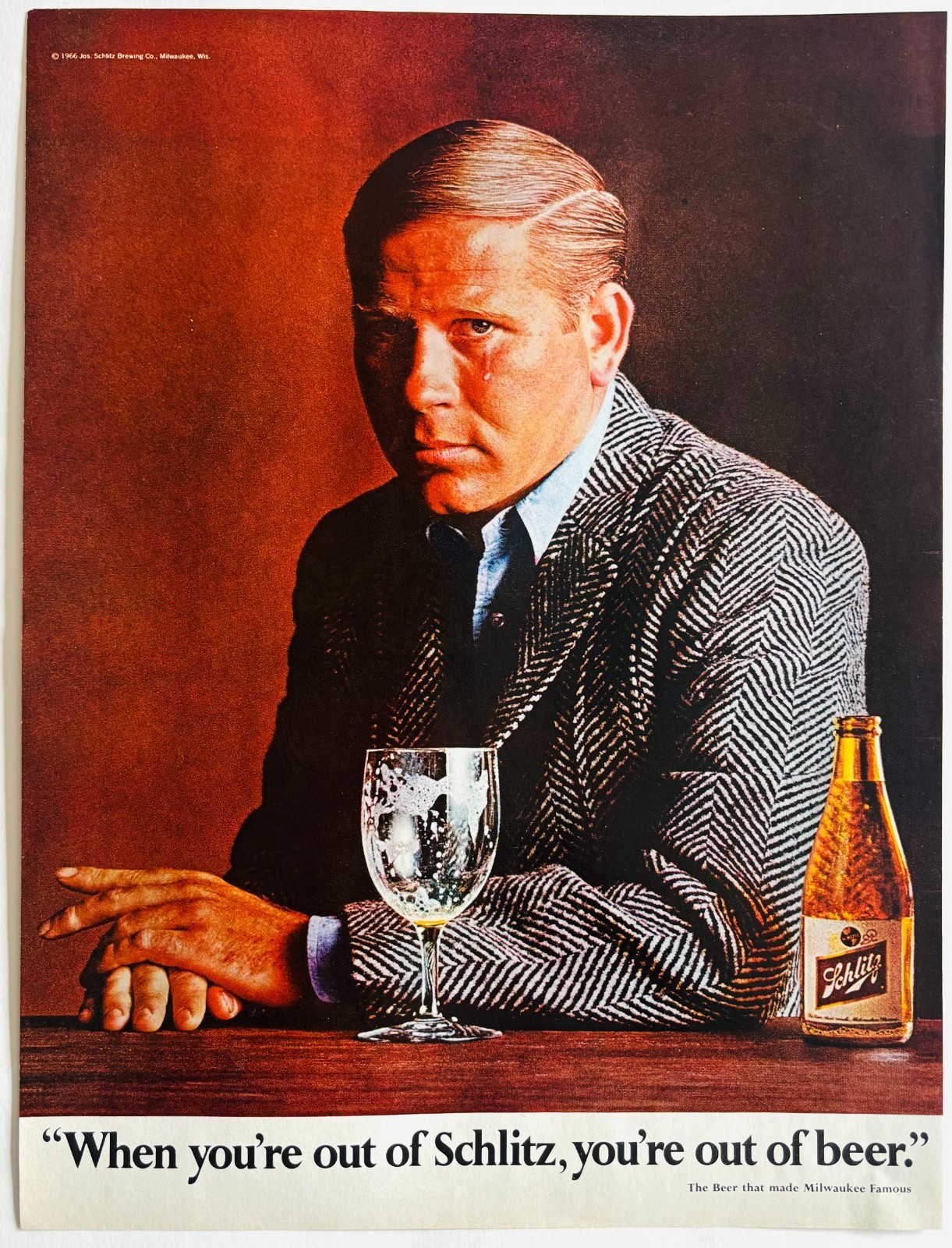 - 1966 Schlitz Milwaukee Beer Advertisement Vintage Brewery Out Of Beer DWYY2