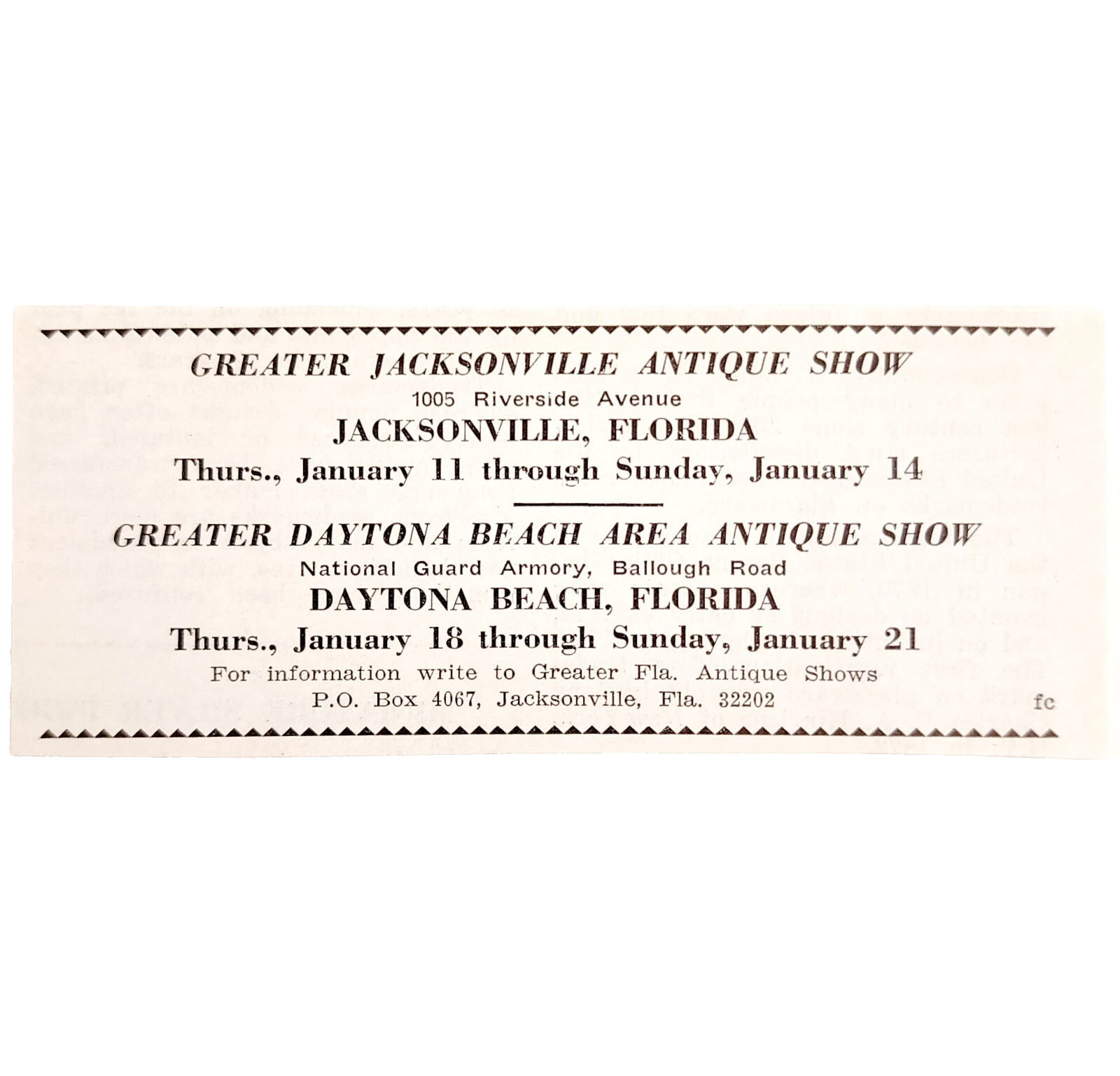 - 1967 Jacksonville & Daytona Beach Antiques Show Advertisement Event F13B