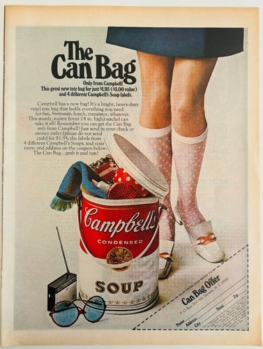 - 1968 Campbell's Condensed Soup Advertisement Life Magazine Can Bag HM2AA