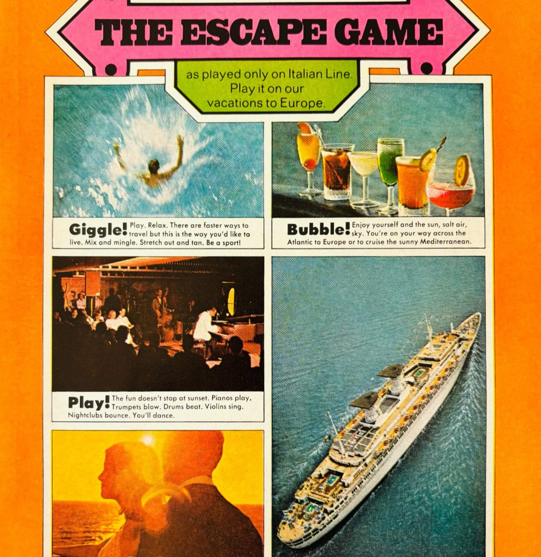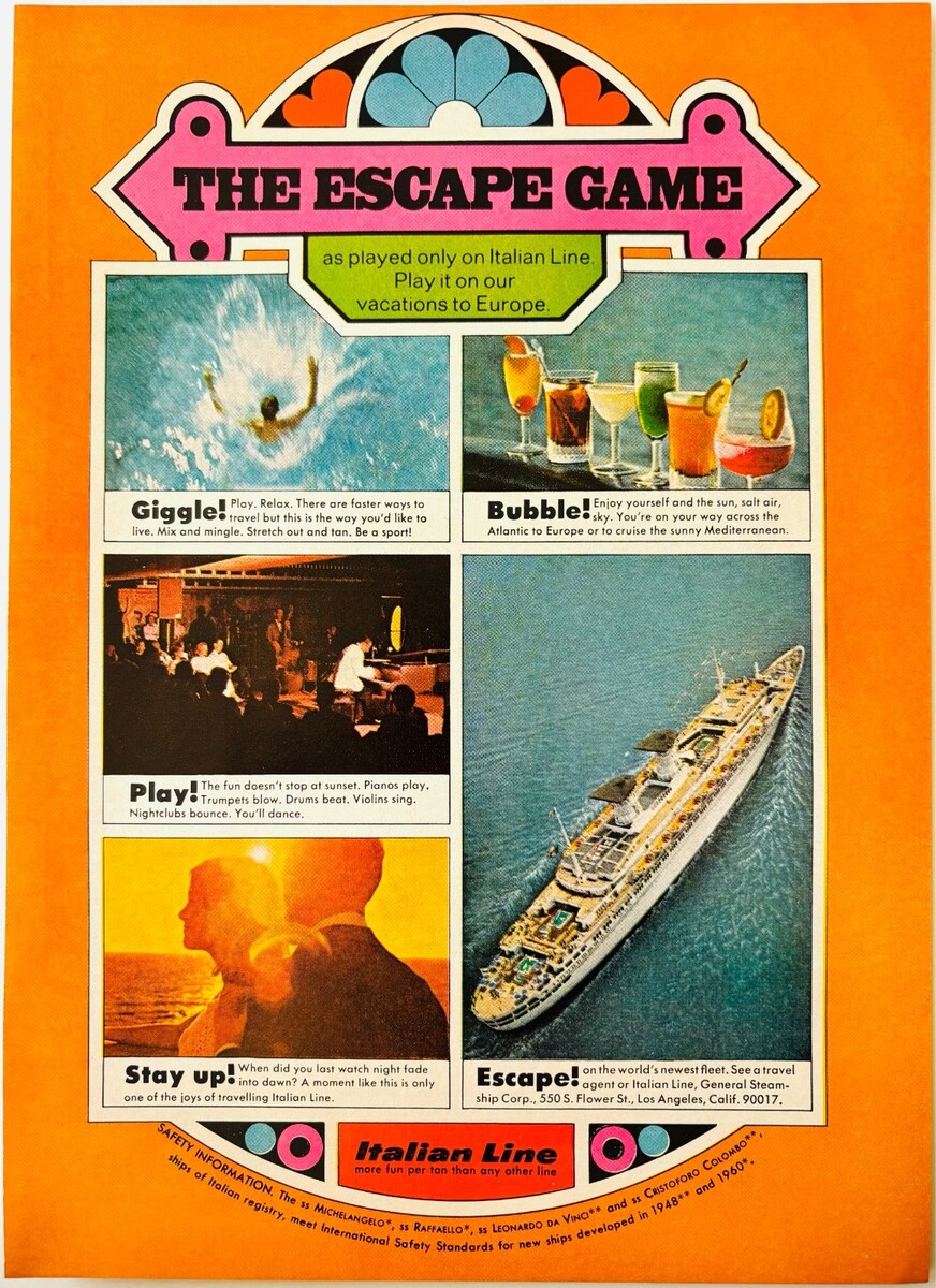 1968 Italian Cruise Lines Advertisement Escape Game Transportation DWW11B