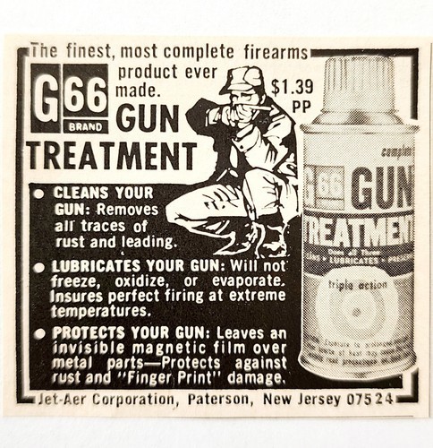 1968 Jet Aer G66 Gun Treatment Cleaner Polish Advertisement Hunting E91E