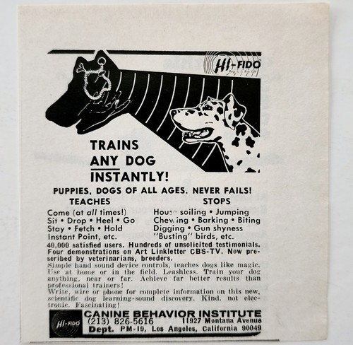 - 1969 Canine Behavior Dog Sound Device Control Advertisement Pet Product E91H