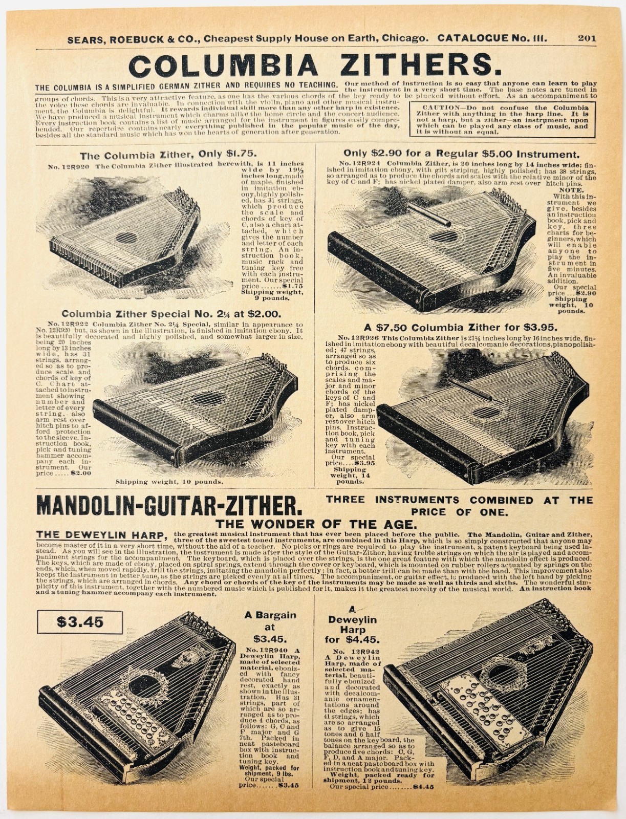 - 1969 Columbia Zithers 1900 Repro Advertisement Musical Instruments Sears DWU16G