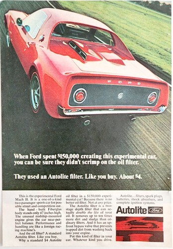 - 1969 Ford Experiment Mach 2 Autolite Oil Filter Advertisement Automobilia DWLL12