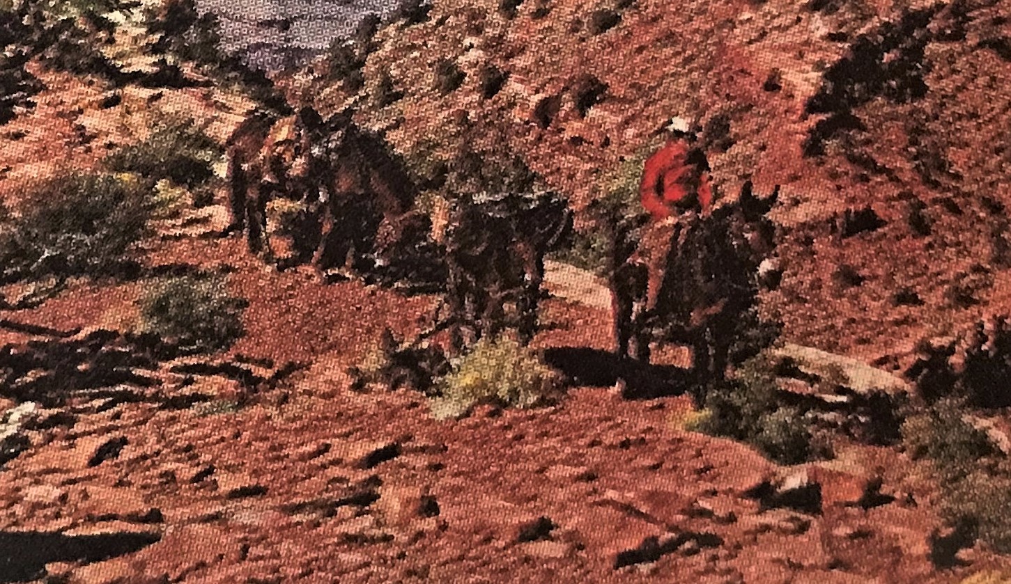 Great condition, wonderful subject matter and dated 1969. We love how you can barely see the guys on horseback because they blend into the landscape.