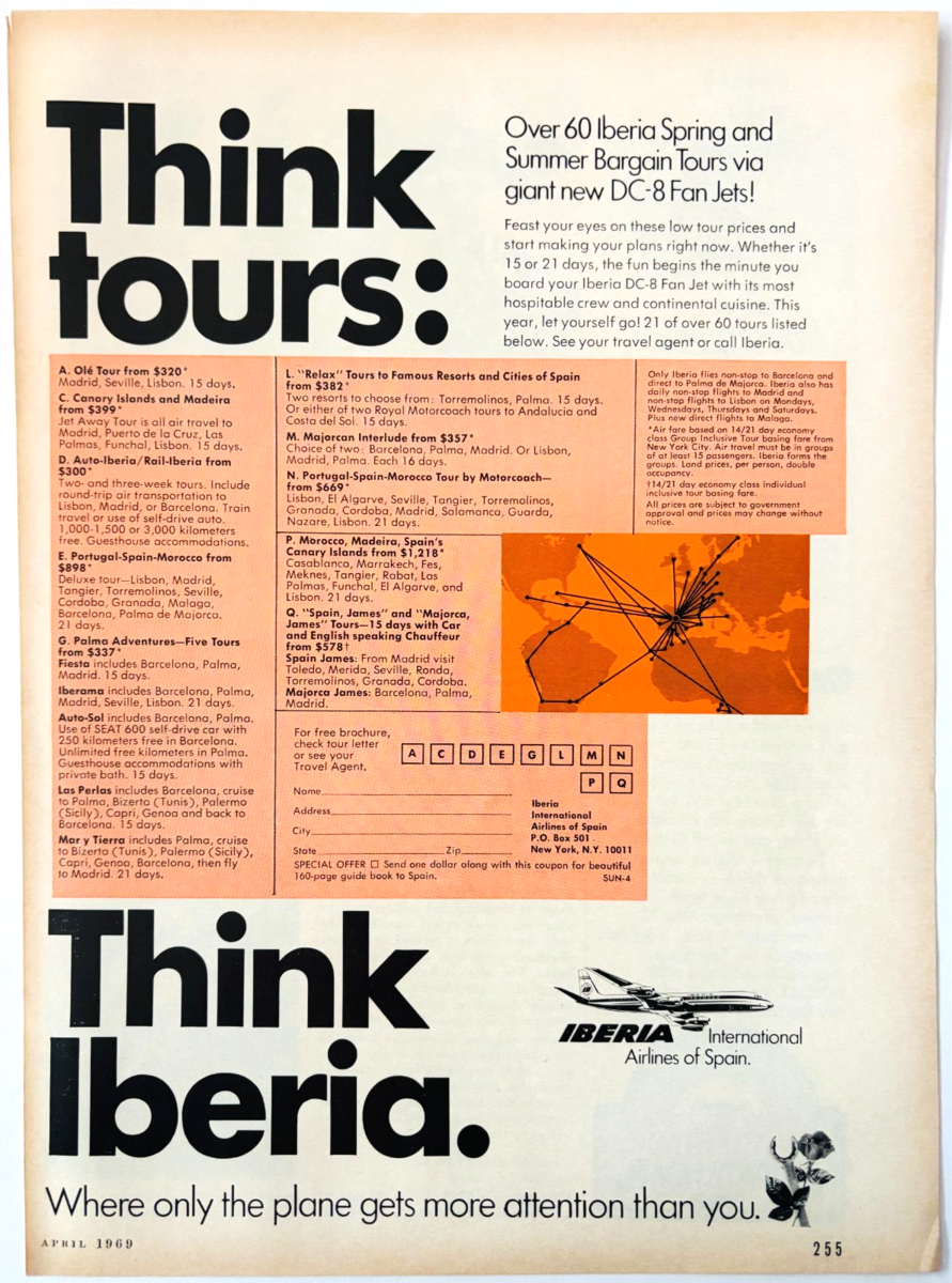 - 1969 Iberia Airlines Advertisement Spain Europe International Vintage DWW10B