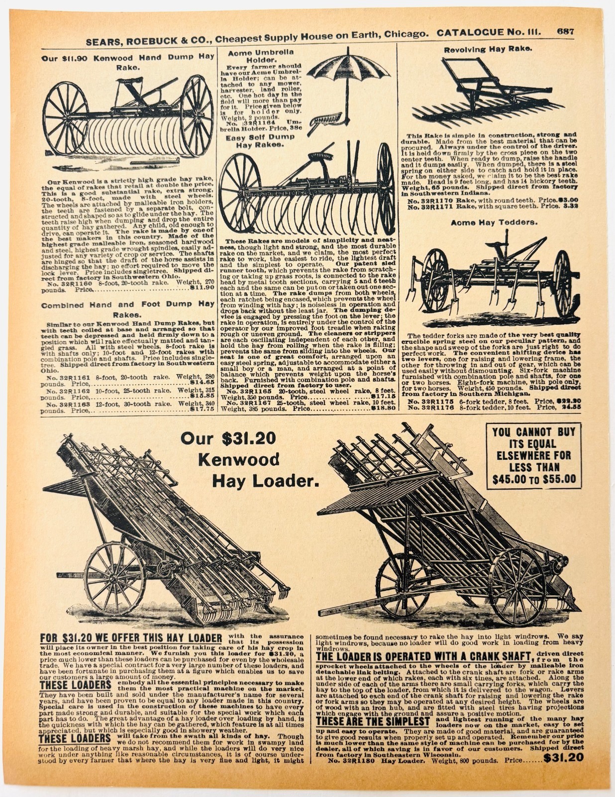 - 1969 Kenwood Hay Loader Rakes 1901 Repro Advertisement Sears Agriculture DWU17D