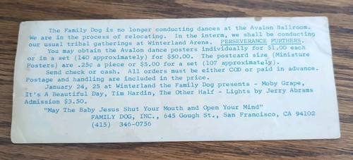 Up for sale is a vintage 1969 Moby Grape/The Other Half Original Handbill FD #W-3, Winterland from 1969