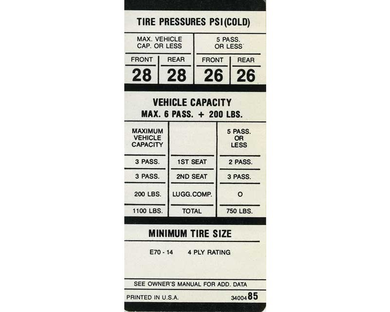 - 1969 Mopar B Body E70x14 Tire Pressure Decal Mopar Part # 3400485