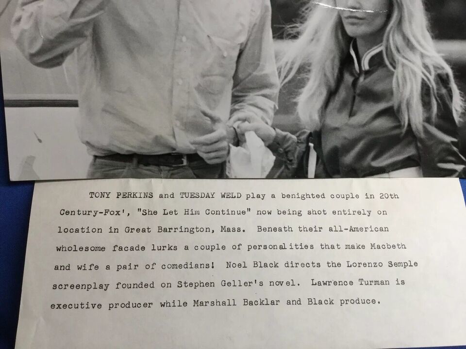 1969 Press Photo Tuesday Weld Anthony Perkins star in "Pretty Poison". Shipped FREE with USPS First Class Package. 9.25 x 7.25