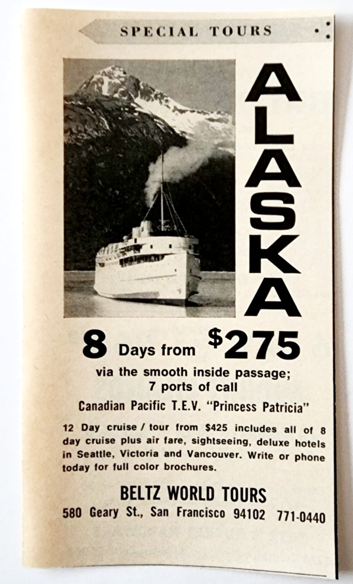 - 1969 Princess Patricia Cruise Ship Advertisement Alaska Tours Vintage G2B