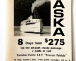 1969 Princess Patricia Cruise Ship Advertisement Alaska Tours Vintage G2B