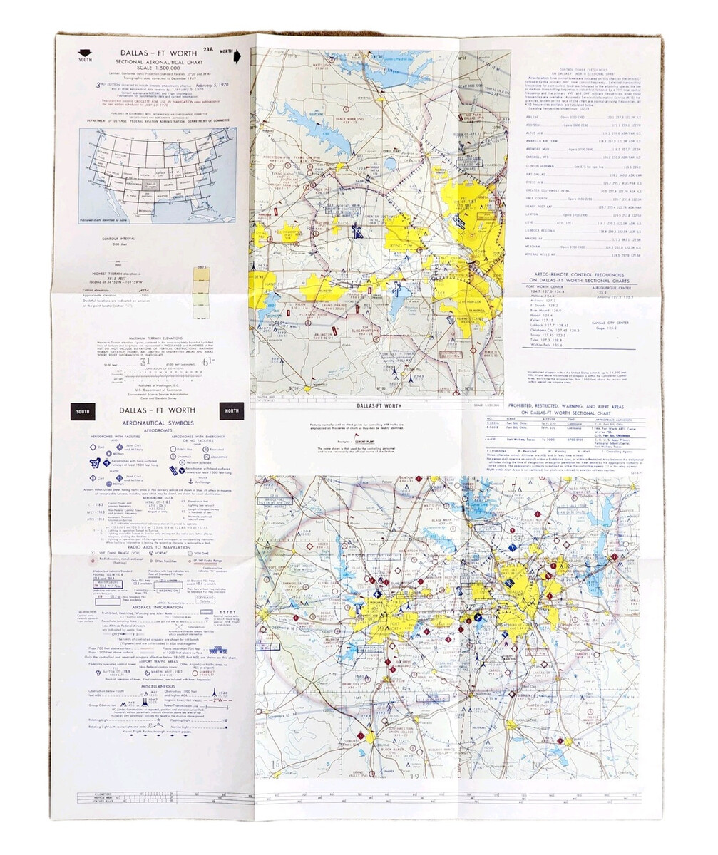 - 1970 Aeronautical Chart Dallas Fort Worth Texas Map Double Sided 22 x 17.5" E6A