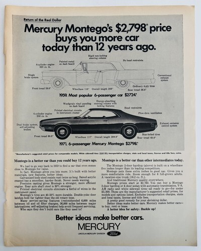 - 1970 Ford Mercury 1971 Montego 6 Passenger Advertisement Automobilia DWII17