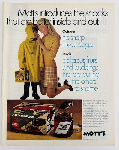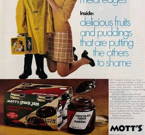- 1970 Mott's Chocolate Fudge Pudding Snack Jars Advertisement Dessert DWII18