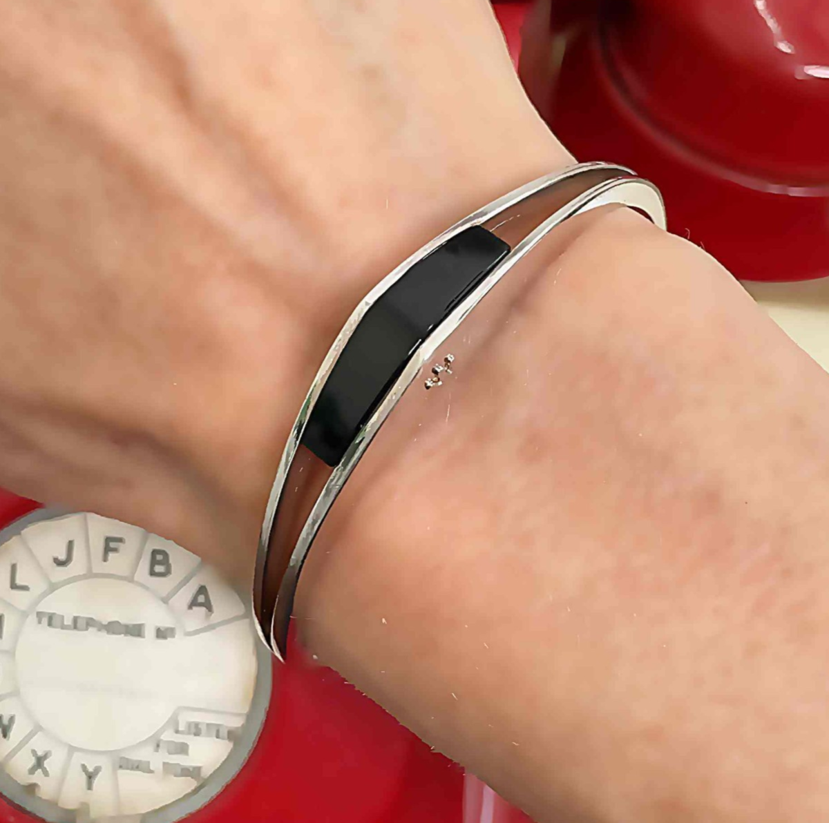 1970 Onyx Silver Bangle Bracelet Unisex Silver Jewelry OFFeR!