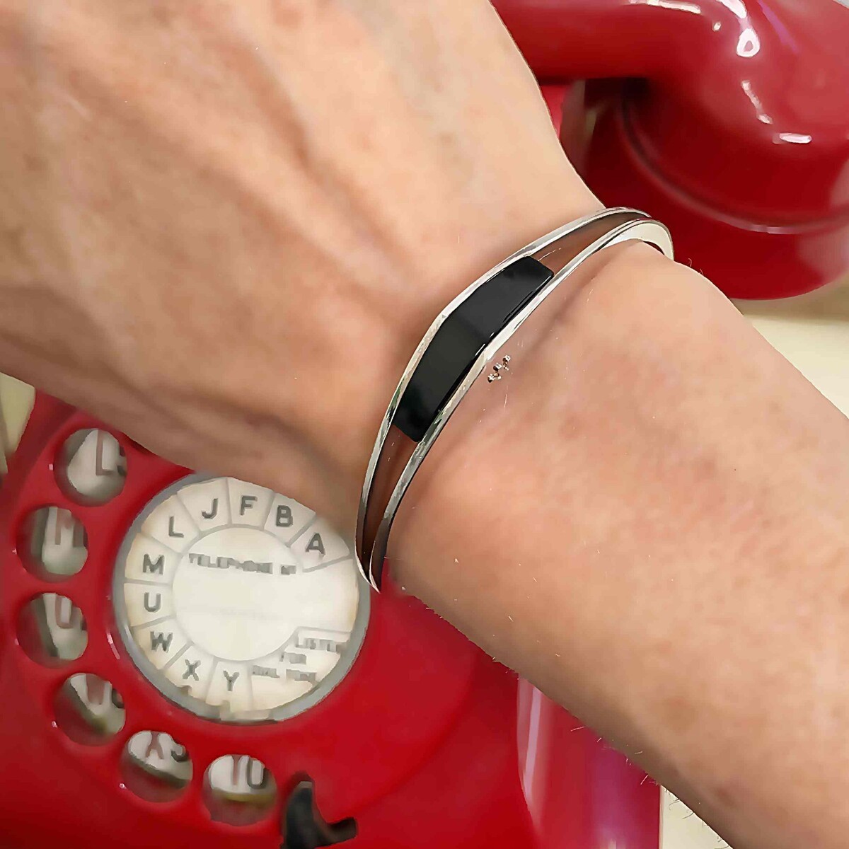 - 1970 Onyx Silver Bangle Bracelet Unisex Silver Jewelry OFFeR!