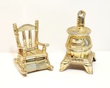 1970 Salt and Pepper Shaker Set Wood Stove Rocking Chair Vintage Metal 2.25"