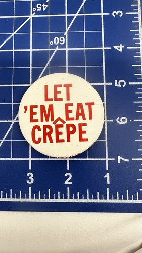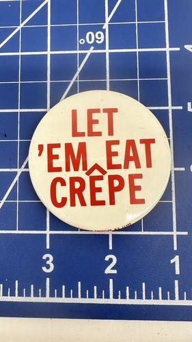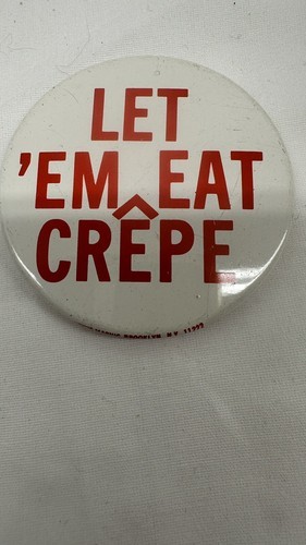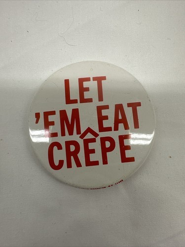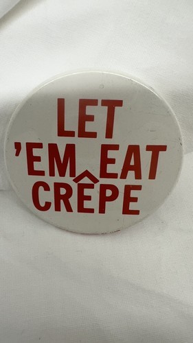 - 1970's Let 'Em Eat Crepe 2 1/4" Pinback Button