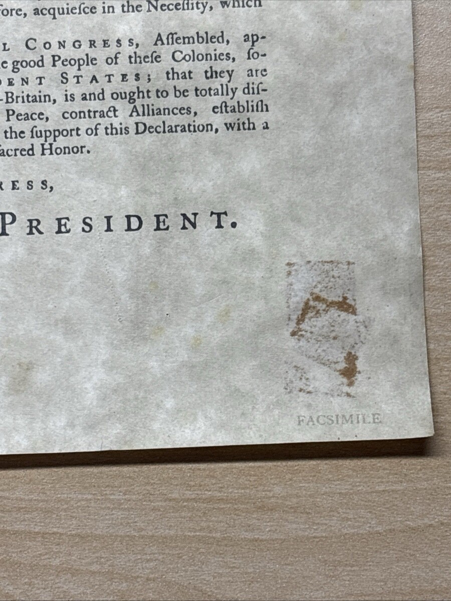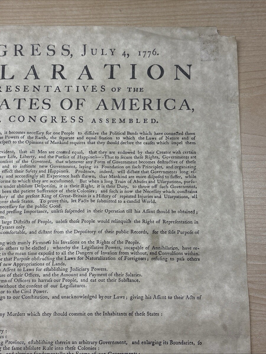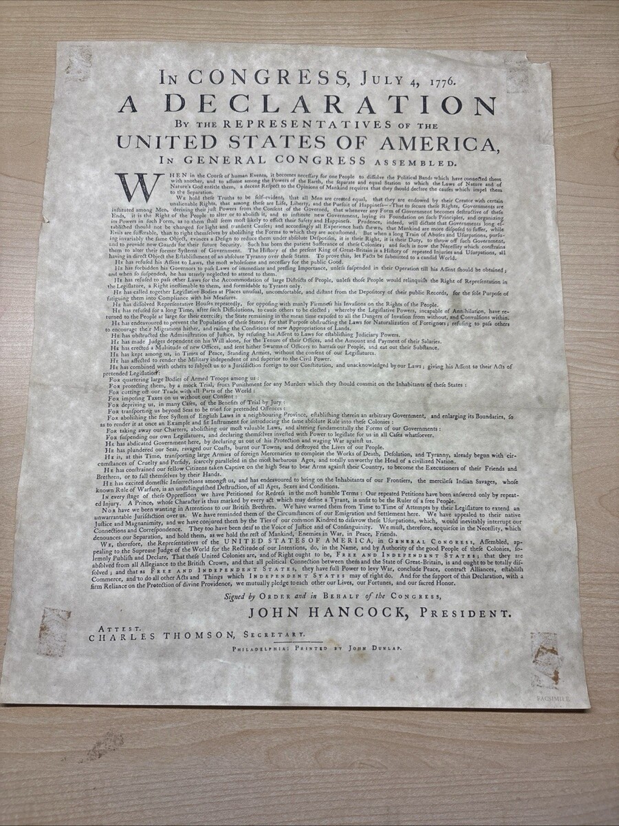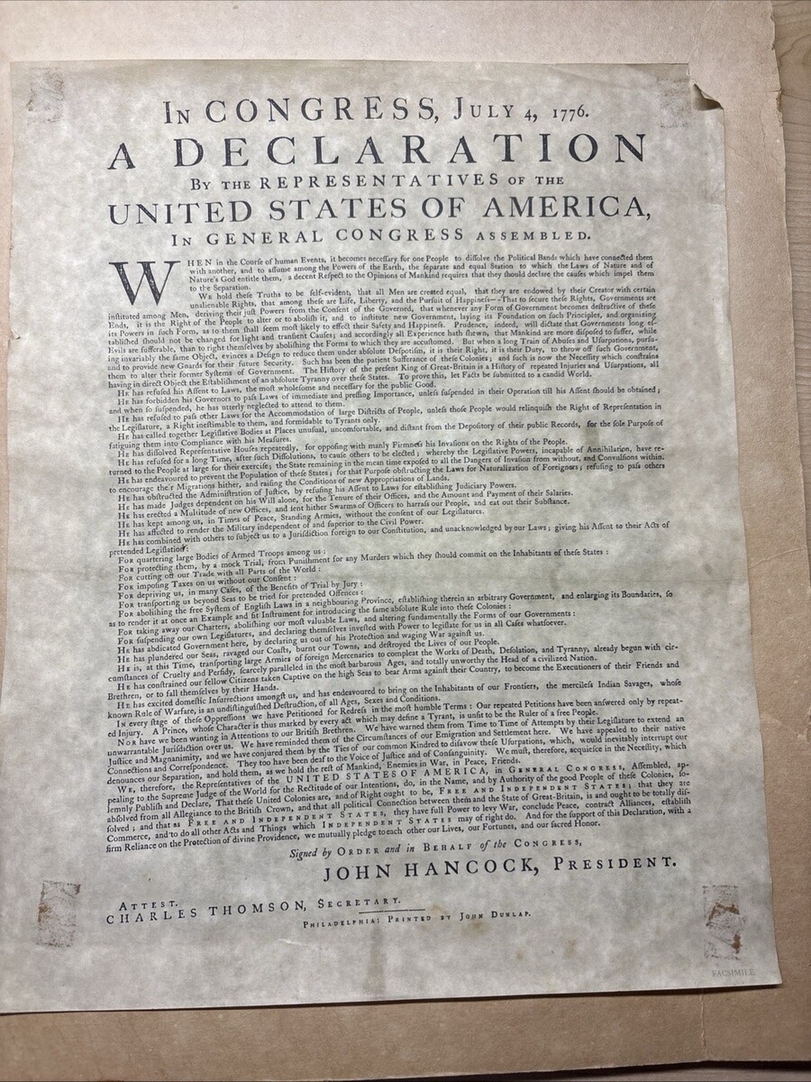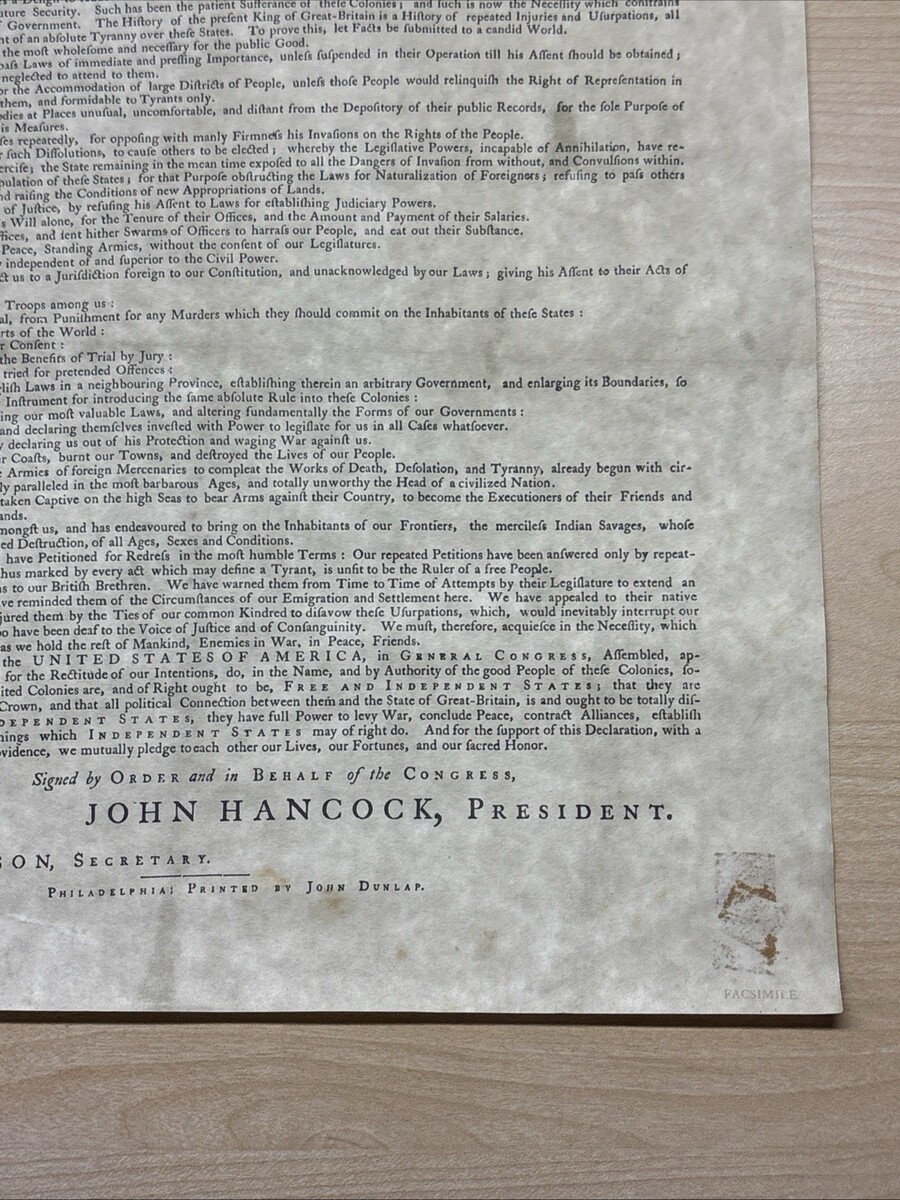 1970’s Rare Facsimile Of Dunlap Broadside Declaration Of Independence