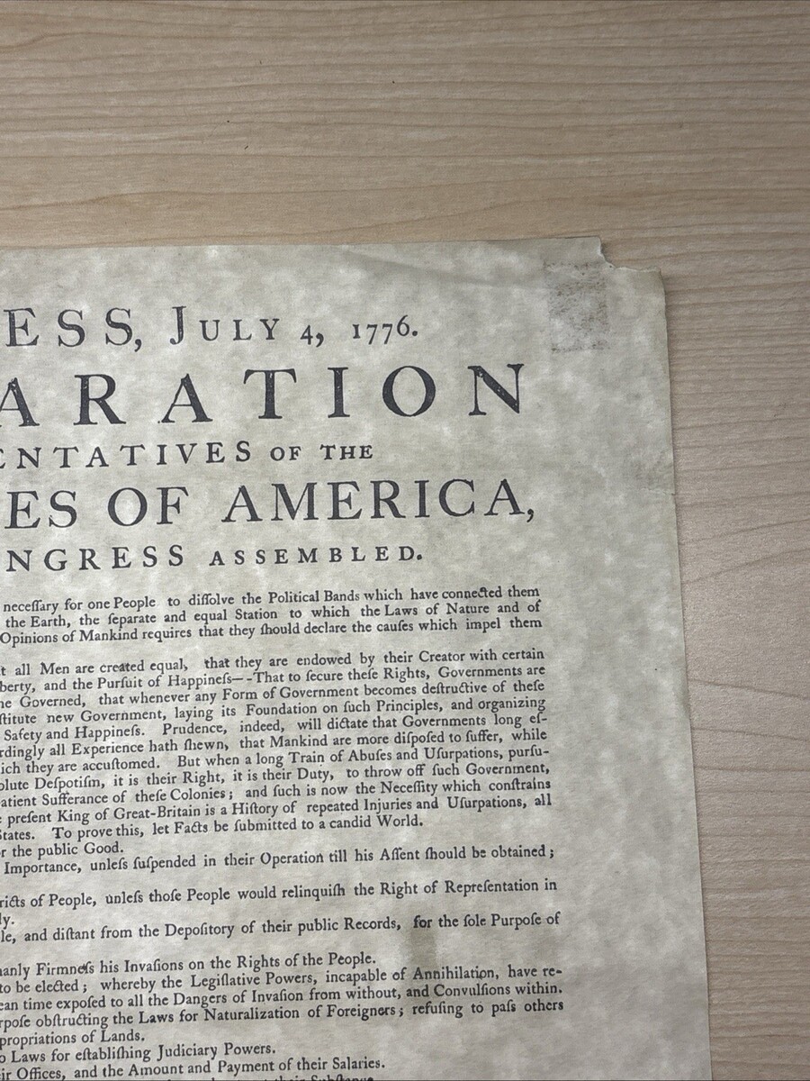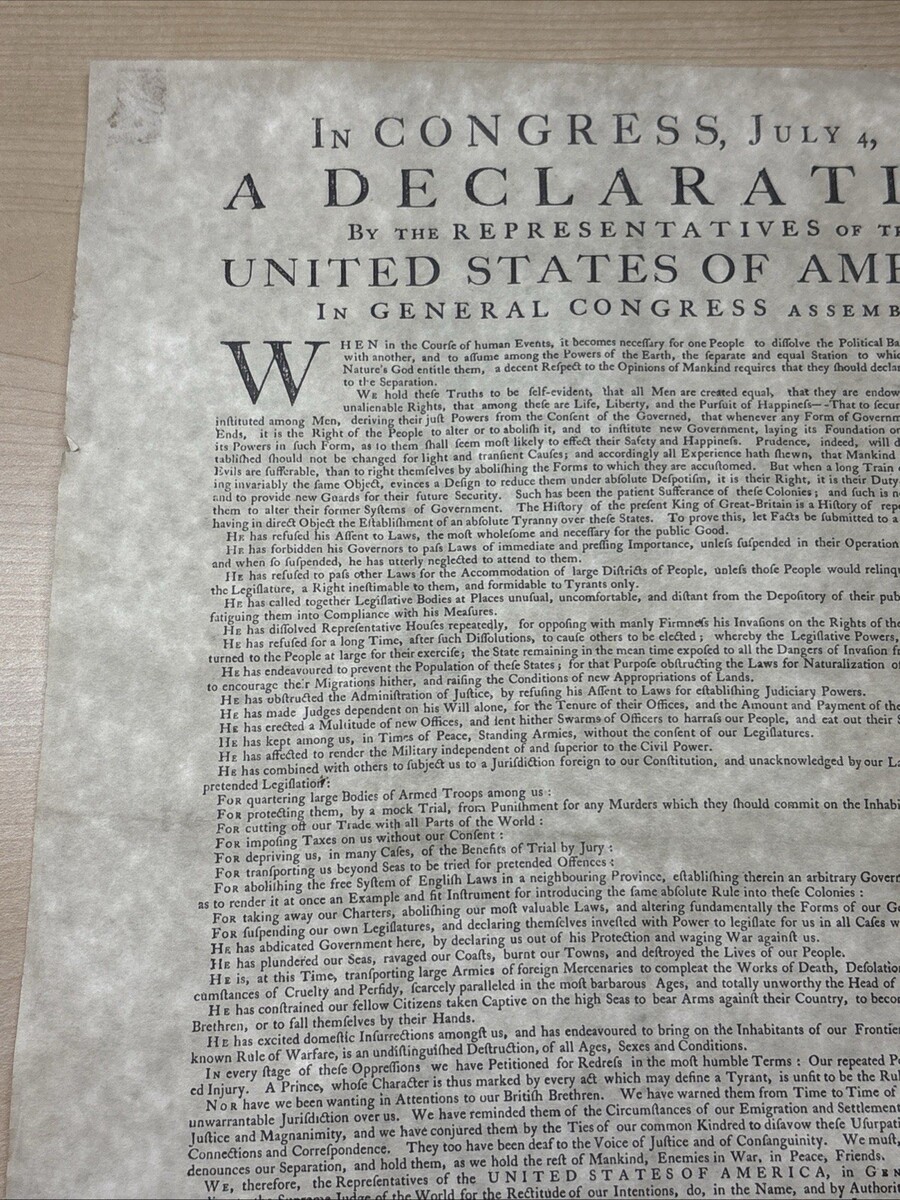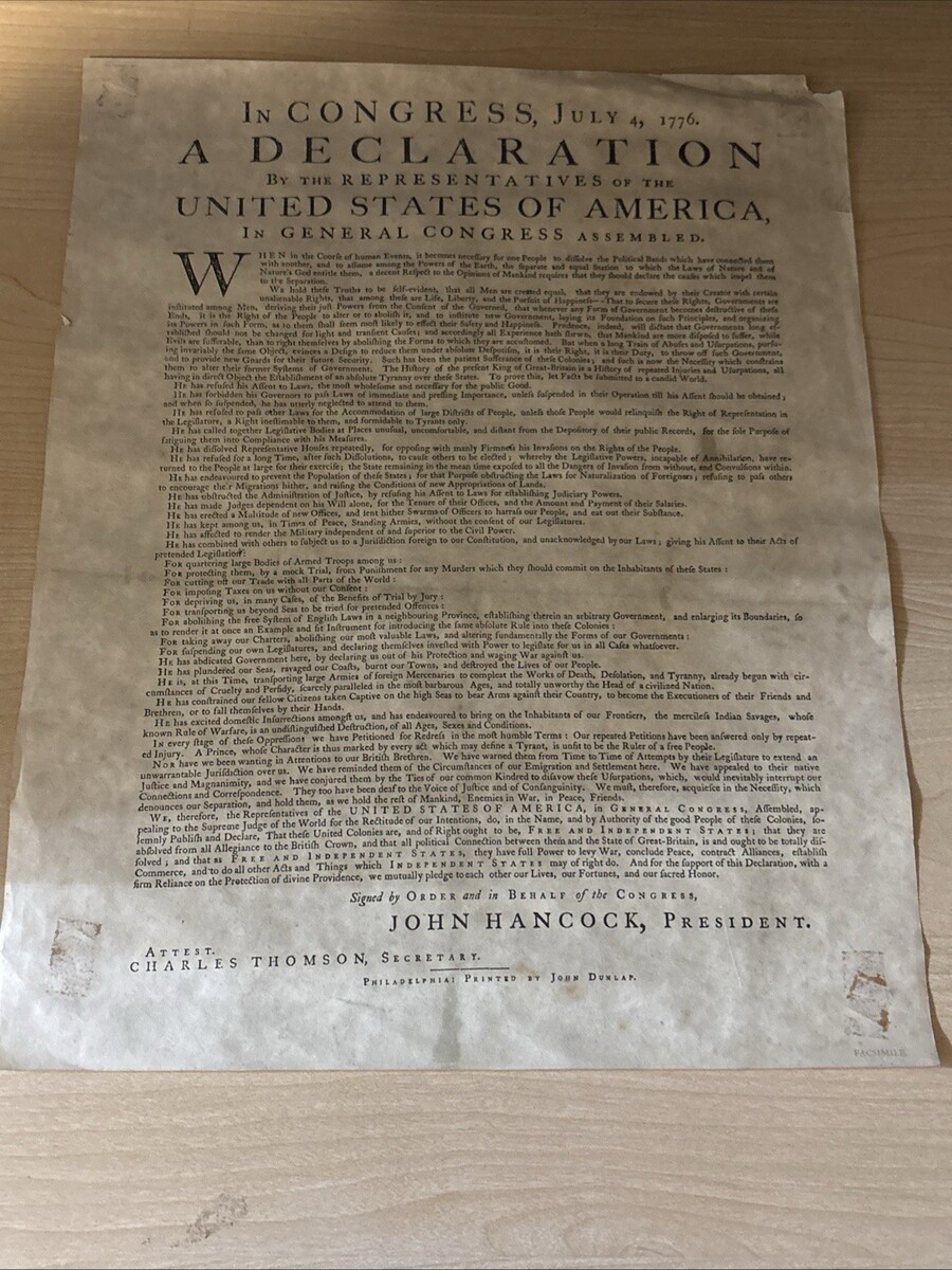 1970?s Rare Facsimile Of Dunlap Broadside Declaration Of Independence