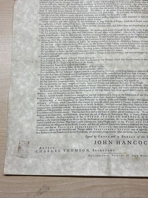 - 1970’s Rare Facsimile Of Dunlap Broadside Declaration Of Independence