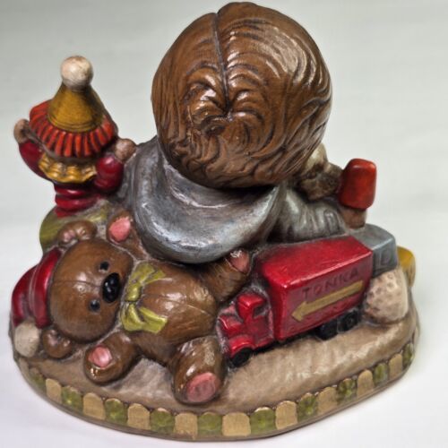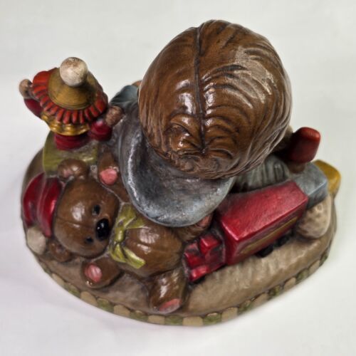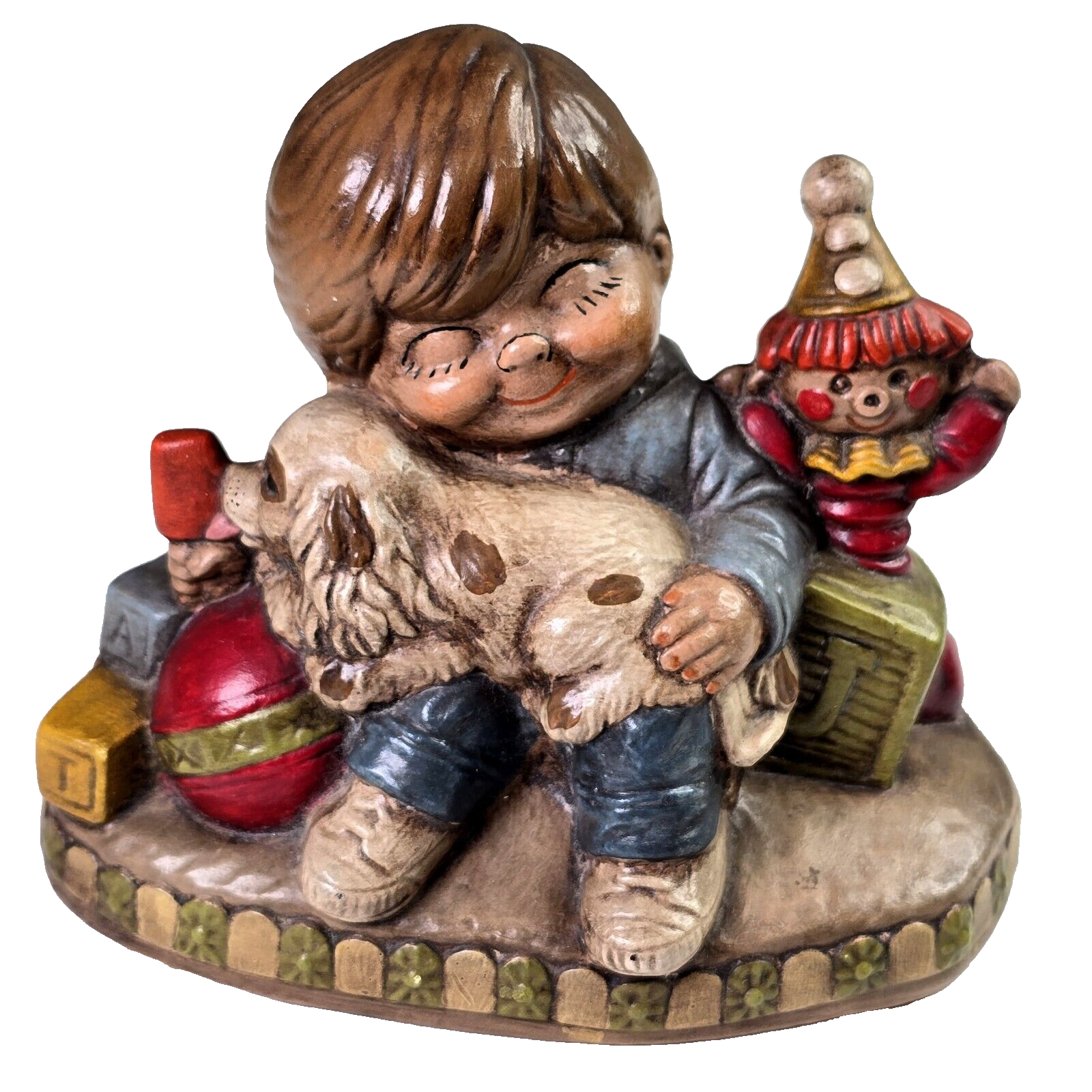 - 1970s Ceramicchrome Inc California Boy Holding Dog with Toys E0606 Vintage USA