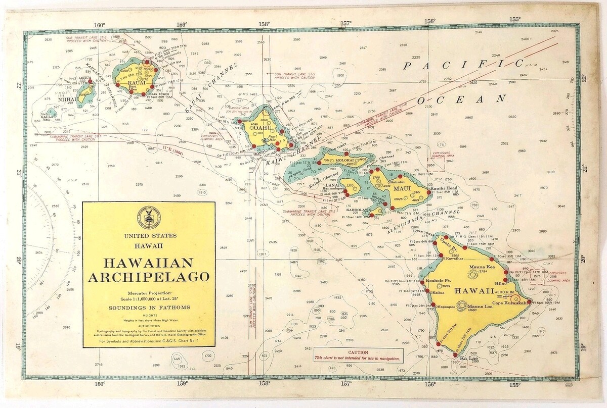 - 1970s Hawaiian Islands Placemat Depth Chart Maritime Nautical Signals DWHH16