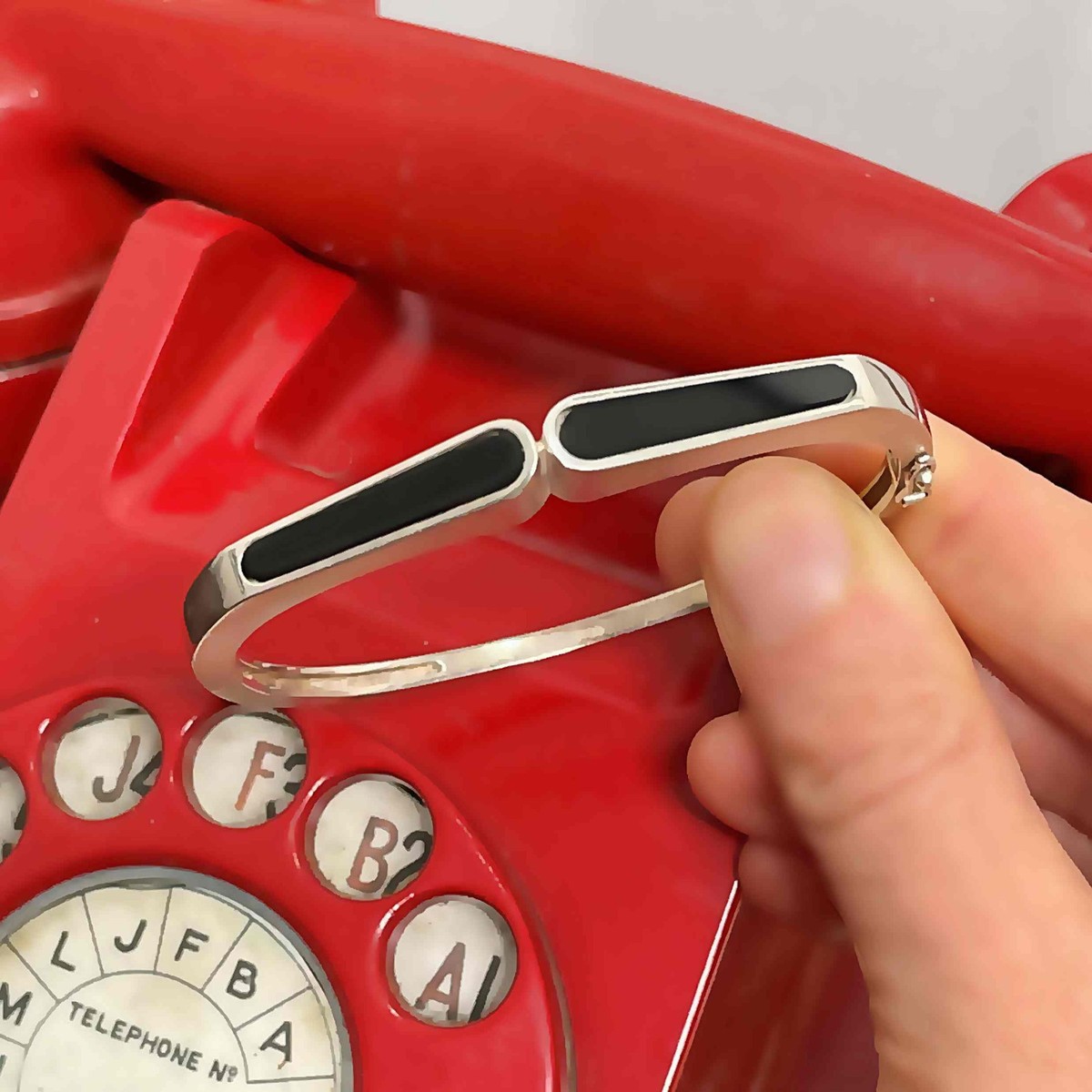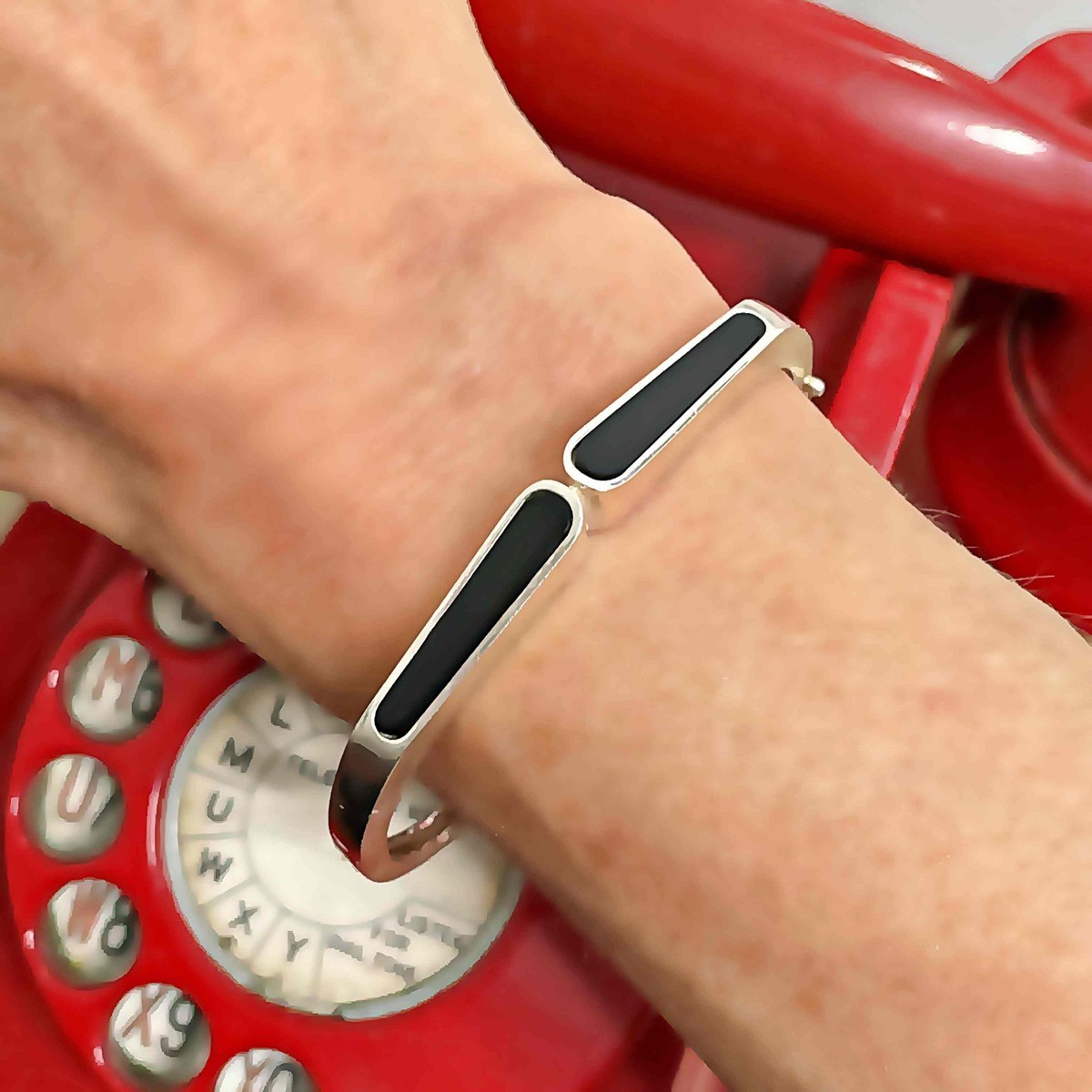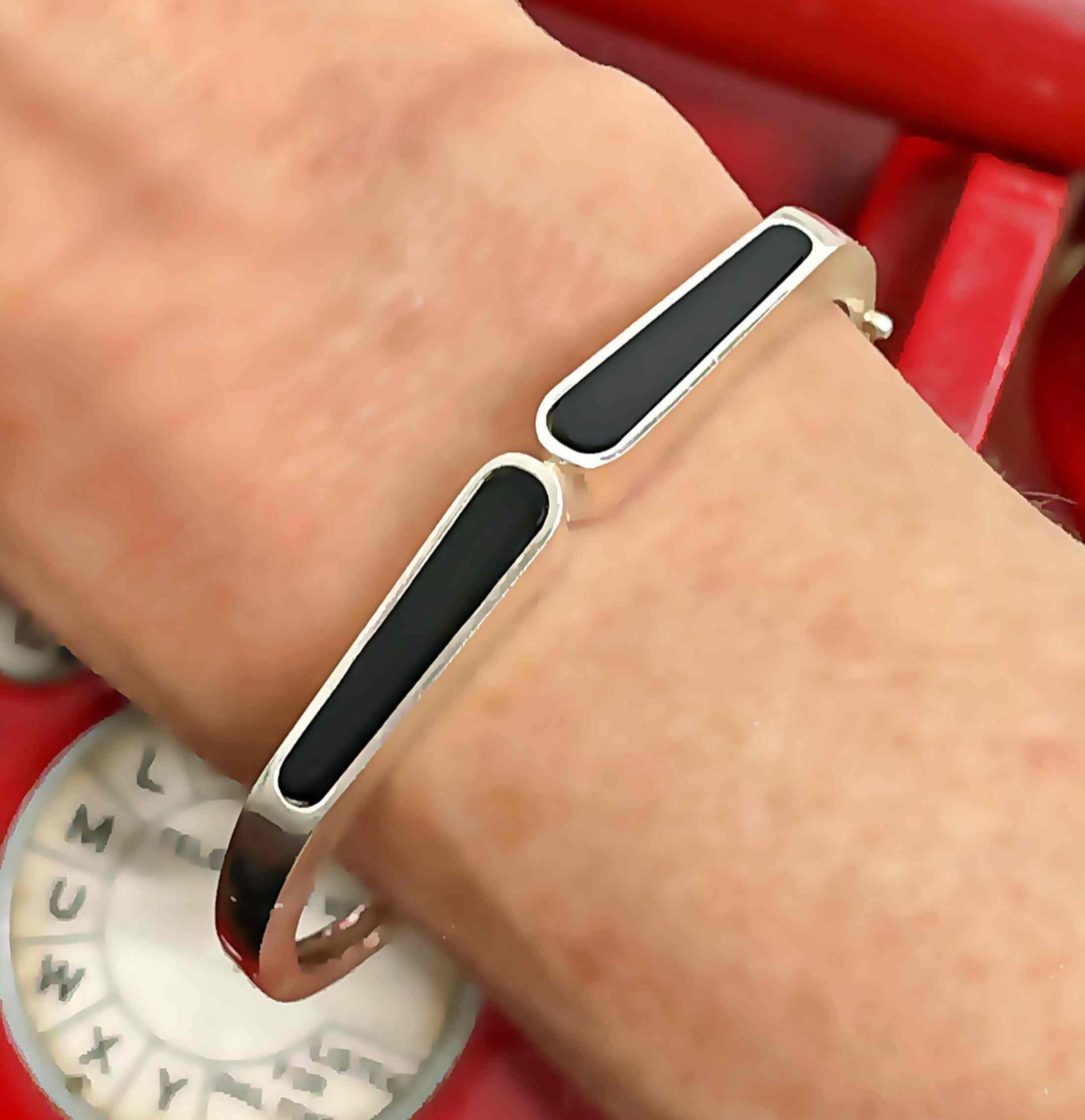 - 1970s Onyx Silver Bangle Bracelet Unisex Silver Jewelry OFFeR!