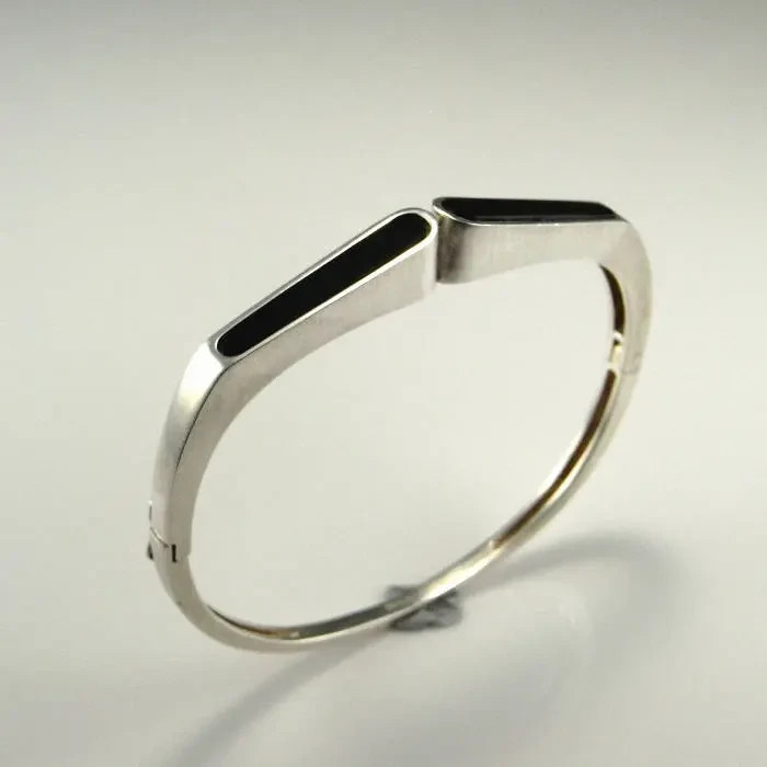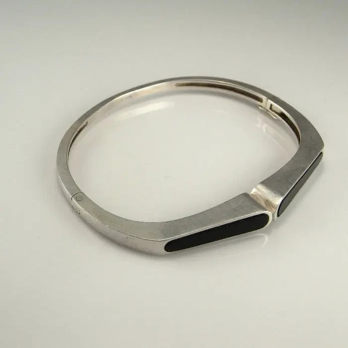 1970s Onyx Silver Bangle Bracelet Unisex Silver Jewelry OFFeR!