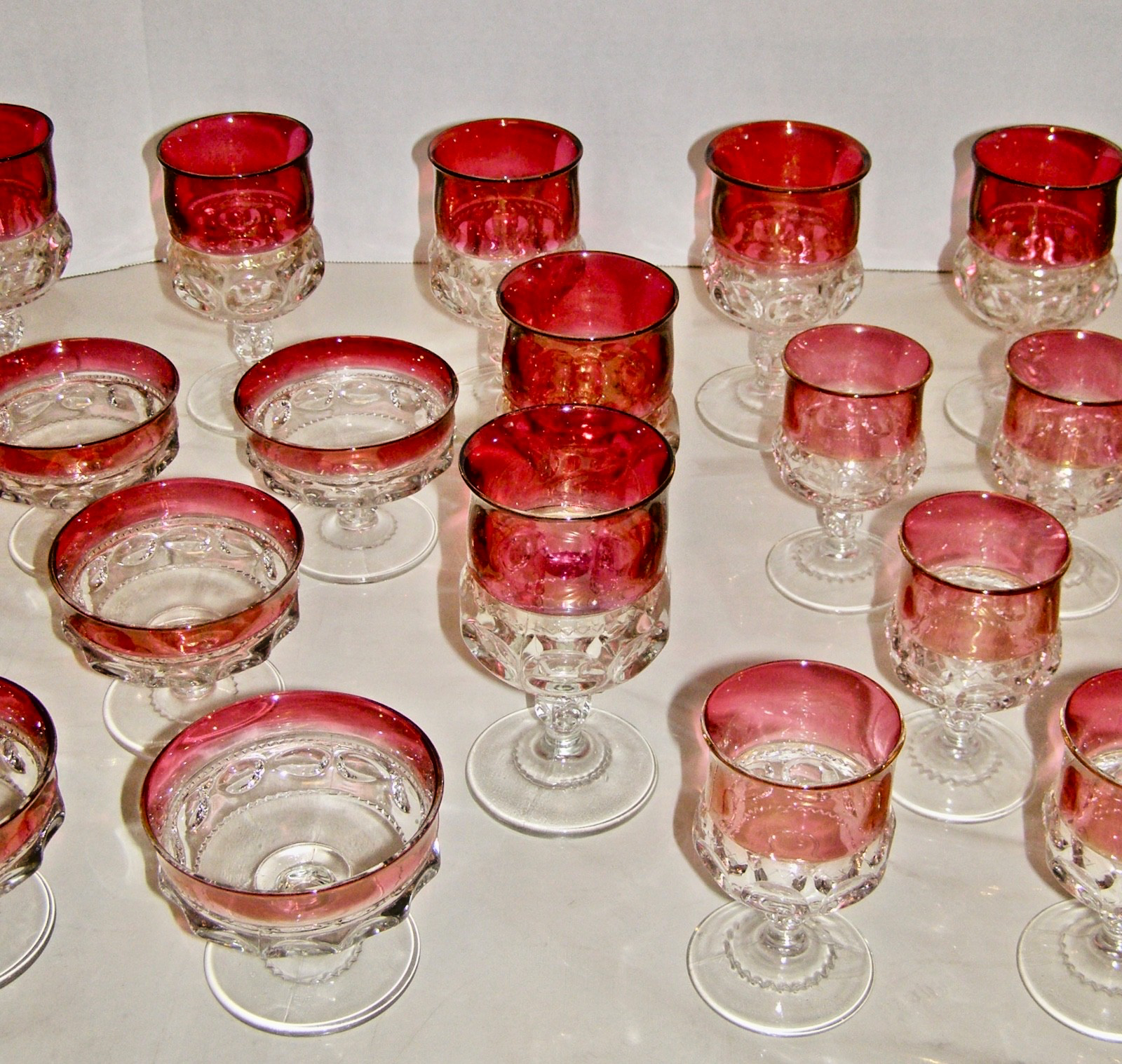 1970s SET of 24 VINT. STEMWARE/BARWARE- 8 WINE/WATER,8 CHAMPAIGN/DESSERT,8 JUICE